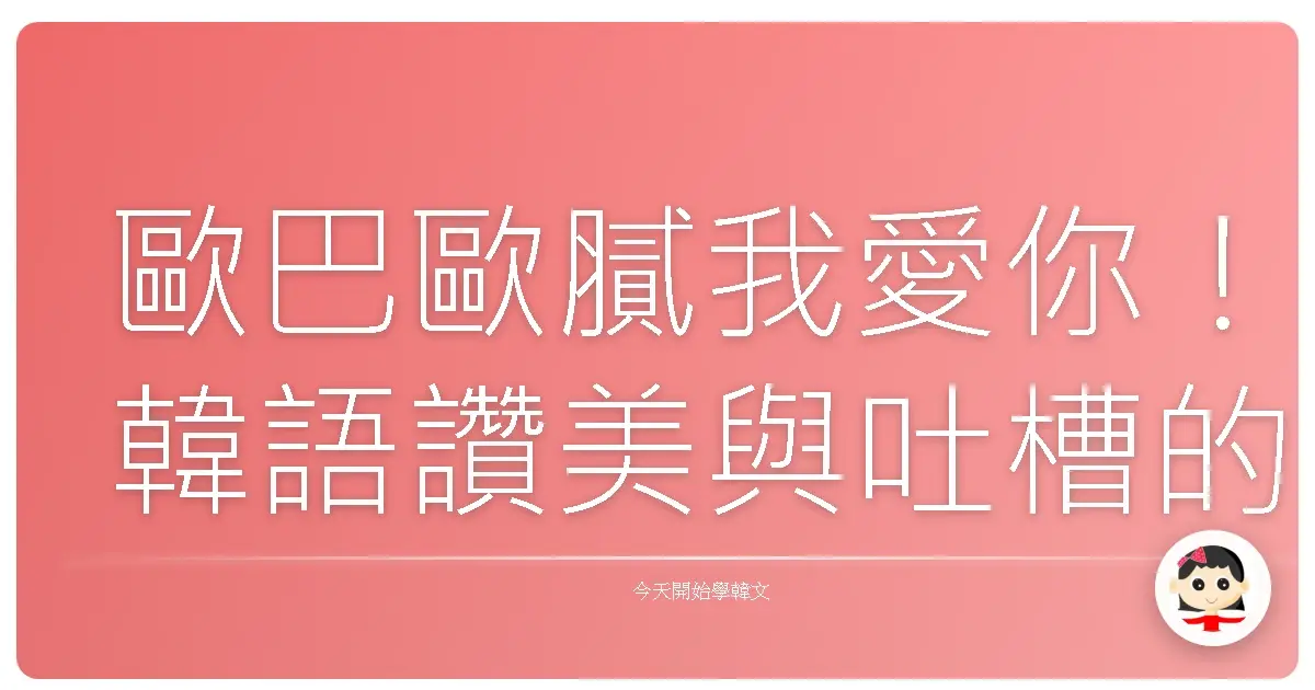 想用韓語跟喜歡的歐巴歐膩拉近距離嗎?讚美要怎麼說才不會太油條?想委婉地表達意見,又怕傷了和氣?這篇讓你學會最道地的韓語讚美與吐槽,就像跟韓國朋友聊天一樣自然!