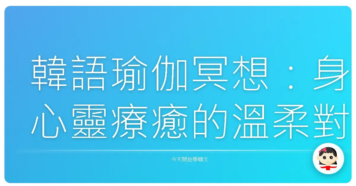學習用溫暖的韓語,將瑜伽和冥想融入生活,一起感受身心靈的和諧與平靜。