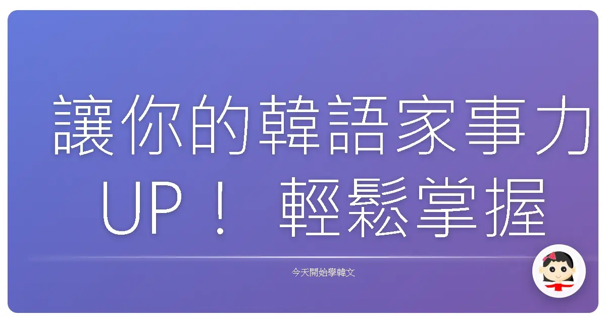 想用韓語和歐巴/歐膩一起打掃,增進感情嗎?這篇讓你輕鬆學會各種實用的韓語家事用語,不只學語言,更了解韓國的生活文化!