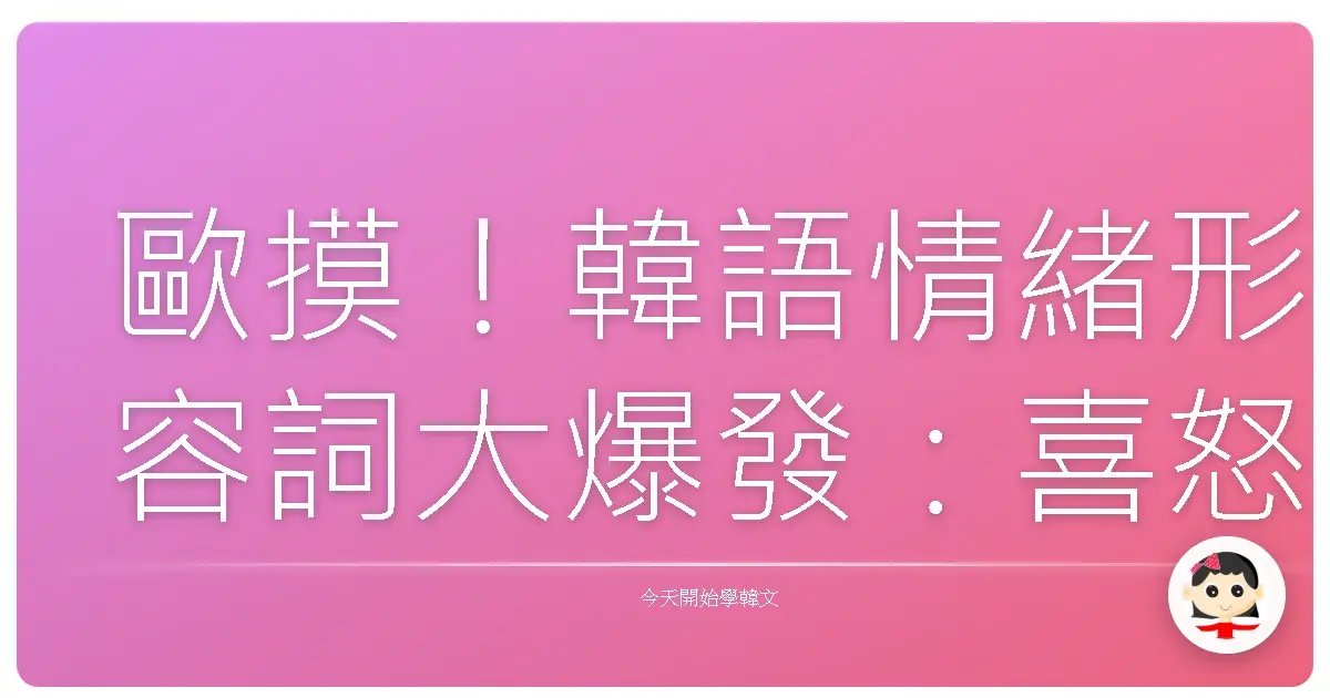 學韓文,除了歐巴、歐膩,更重要的是要學會表達自己的心情啦!這篇文章要帶你用台灣人的角度,一起探索韓語中那些超生動、超可愛的喜怒哀樂形容詞,讓你不再只會說「좋아요 (joayo) 好」啦!準備好跟我們一起進入韓語情緒的世界了嗎?Let’s go!