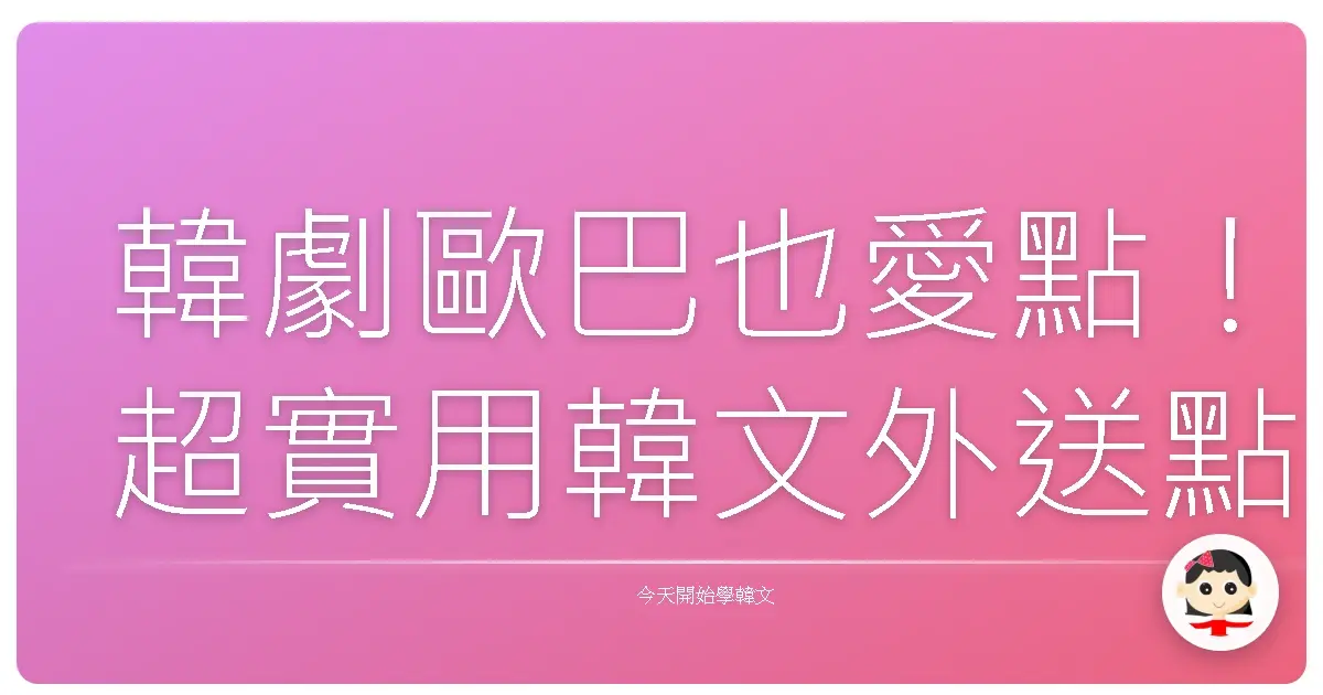 - **這裡是 (Yeogi-neun)**:여기는 (呦gi-neun) - 告訴外送員你的地址時很好用。例如:「呦gi-neun XX 洞 XX 號 입니다 (呦gi-neun XX dong XX ho imnida) – 這裡是 XX 洞 XX 號」。